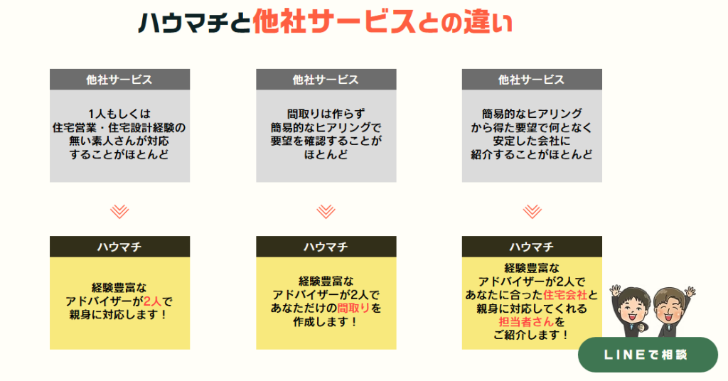 ハウマチは、家づくりに不安を感じている方にとって、安心して相談できるサービスです。